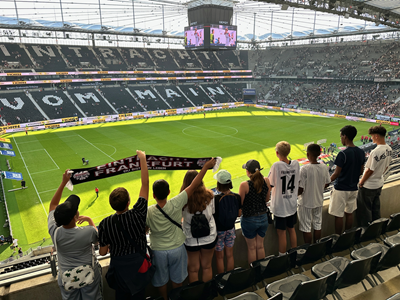 Die Gruppe reiste bequem mit Bus und Bahn zum Stadion und wieder zurück. Vor Ort feuerten die Jugendlichen begeistert die Eintracht an, die schlussendlich auch den Sieg davontrug. Insgesamt waren über 57.000 Zuschauende in der Arena, was für eine großartige Atmosphäre sorgte. Und natürlich kauften sich die Heusenstammer Gäste einen Schal als Andenken an diesen tollen Sommernachmittag.