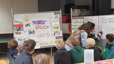 Die Kinder und Jugendlichen im Alter zwischen 11 und 21 Jahren sind sich schnell einig, dass die Einrichtung allen friedlich gesinnten jungen Menschen offensteht, gleich welcher Hautfarbe, Religion oder sexuellen Orientierung. Das Projekt unter dem Titel "Rassismus und Vielfalt" war bereits für 2020 geplant - wegen der Pandemie hatte es verschoben werden müssen. Jetzt läuft die Aktion, unterstützt von der Initiative des Bundes-Familienministeriums, "Demokratie leben". In drei Tagen verbrauchen die Teams fast 150 Spraydosen, lernen, welche Aufsätze einen dünnen oder einen dickeren Strahl erzeugen, wie die Farbe transparent erscheint oder kunstvoll verschwimmt oder wie man die Dosen am besten hält und bewegt. Zum Schutz vor der Chemie tragen alle Aktiven Plastikhandschuhe und Masken. Letztere sind sie ohnehin längst gewöhnt,sagt Jahn Scheel, Leiter der Kinder- und Jugendförderung. Und während Sara und Genevieve Technik und Themen vermitteln, stellt Jahn mit drei Mitarbeitern sicher, dass mittags Pizza geliefert wird, dass nebenbei Tischkicker, Billard und Gesellschaftspiele genutzt werden können.
