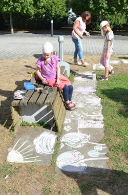 Es gab viele abwechslungsreiche Angebote, wie zum Beispiel Gestalten mit Ton, Wollwebnetze, Henna-Tattoos, Windspiele, Aquarellmalerei, Wollschmuck, Schüsselanhänger, Fußballturnier, Straßenkreidegemälde und Hüpfspiele, Gestalten und Bemalen von Stoffturnbeuteln, Paracord-Bänder und vieles mehr.
